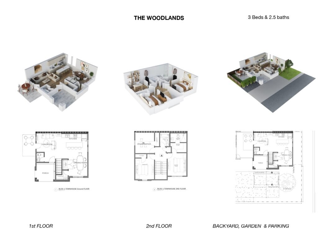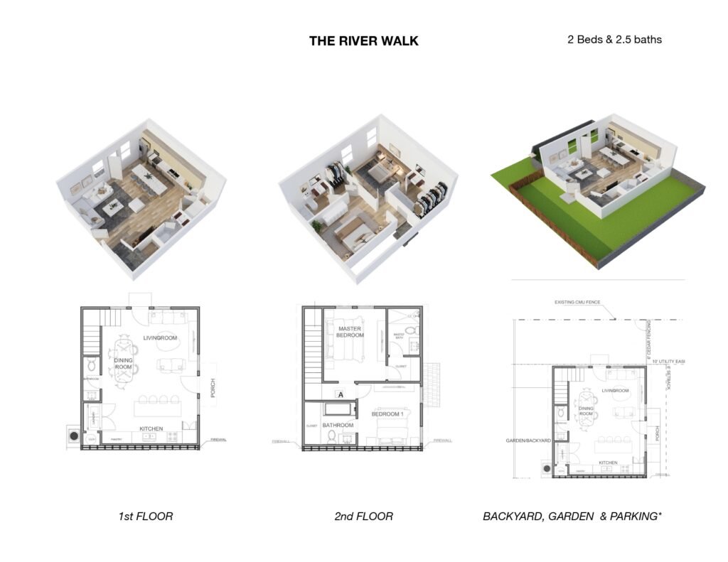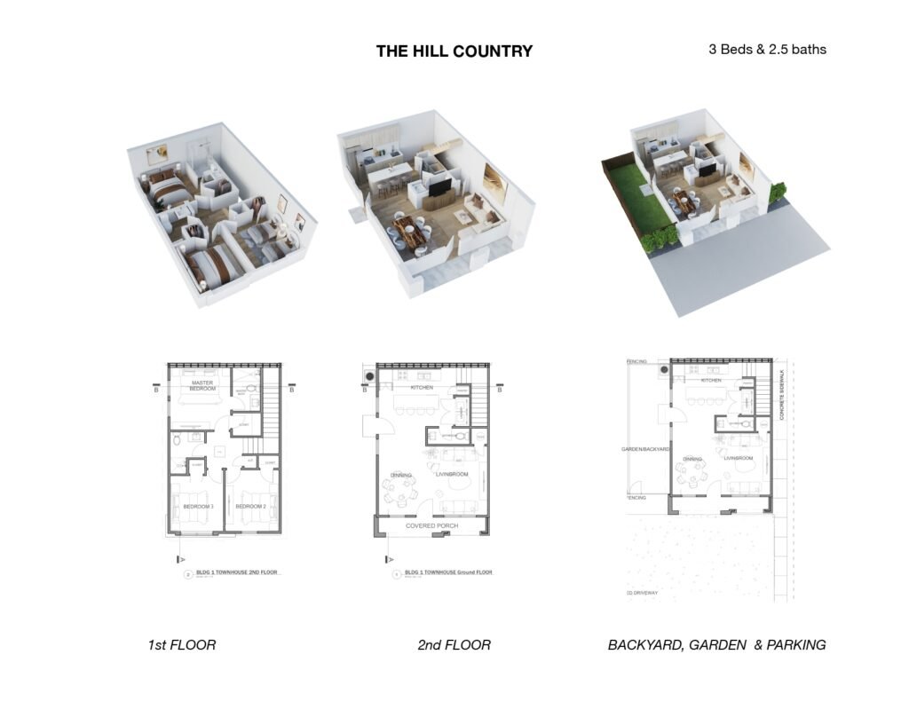 We offer 3 different spacious plans with two- and three-bedroom townhomes, each thoughtfully designed across two stories with open-concept layouts and private yards.