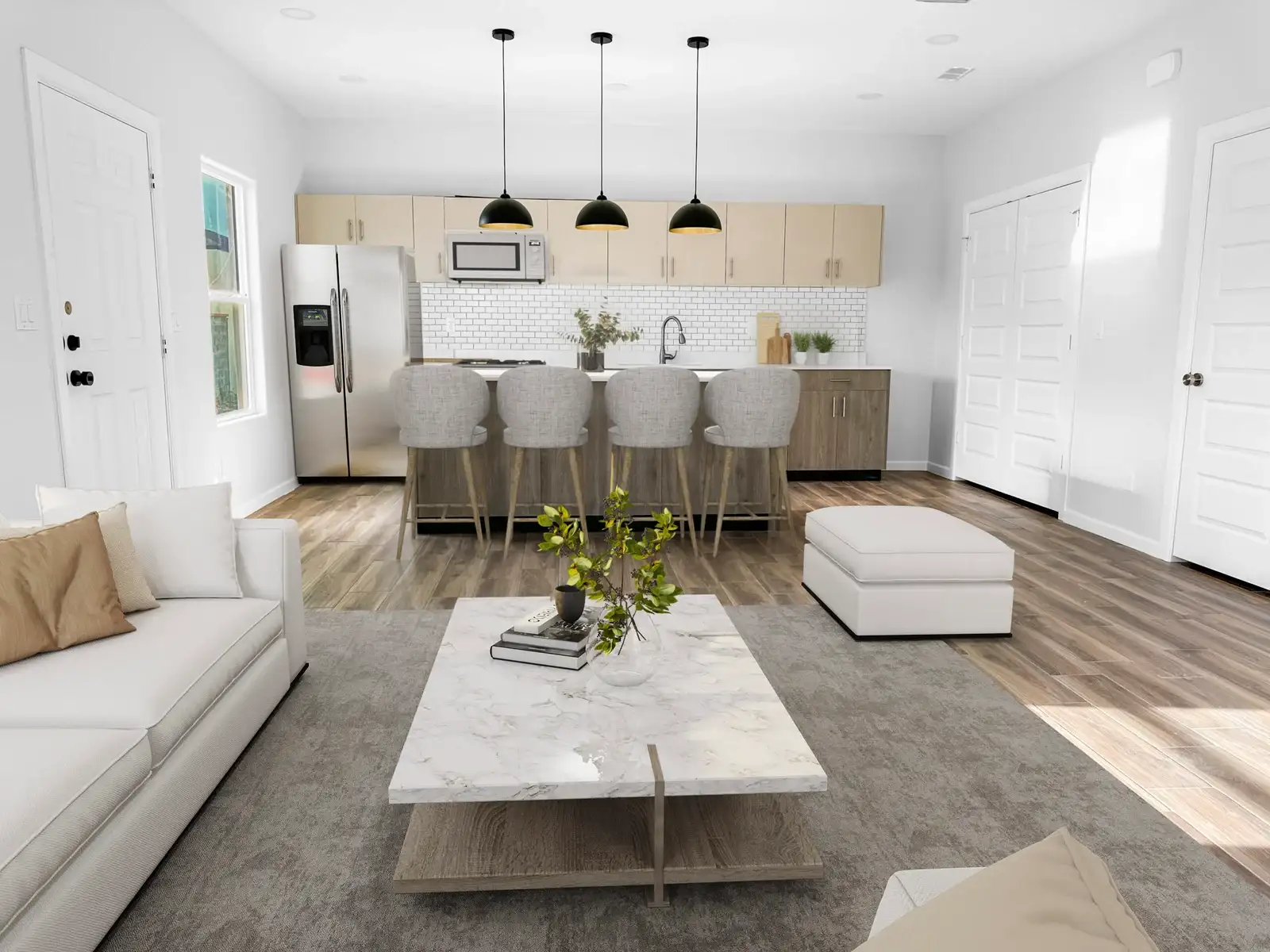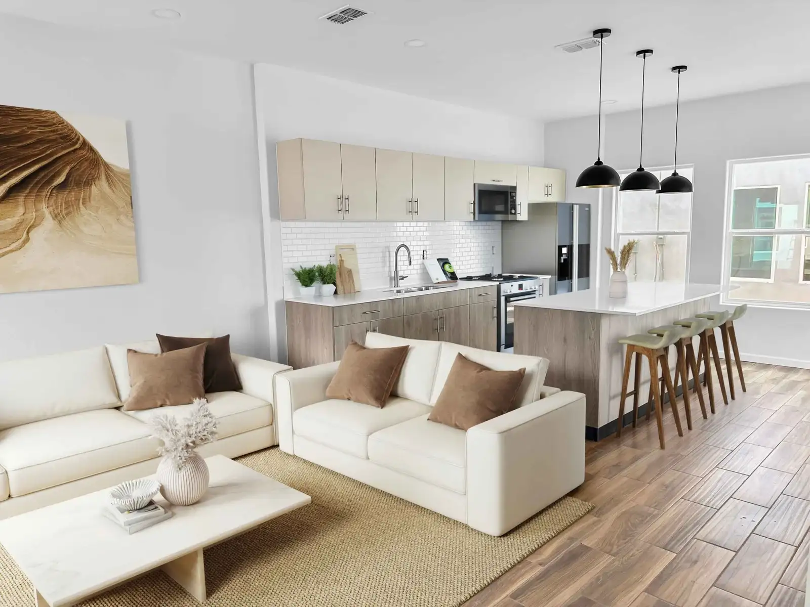 Our spacious two- and three-bedroom townhomes are thoughtfully designed across two stories combining privacy, comfort, modern elegance and private yards with beautifully landscaped surroundings.